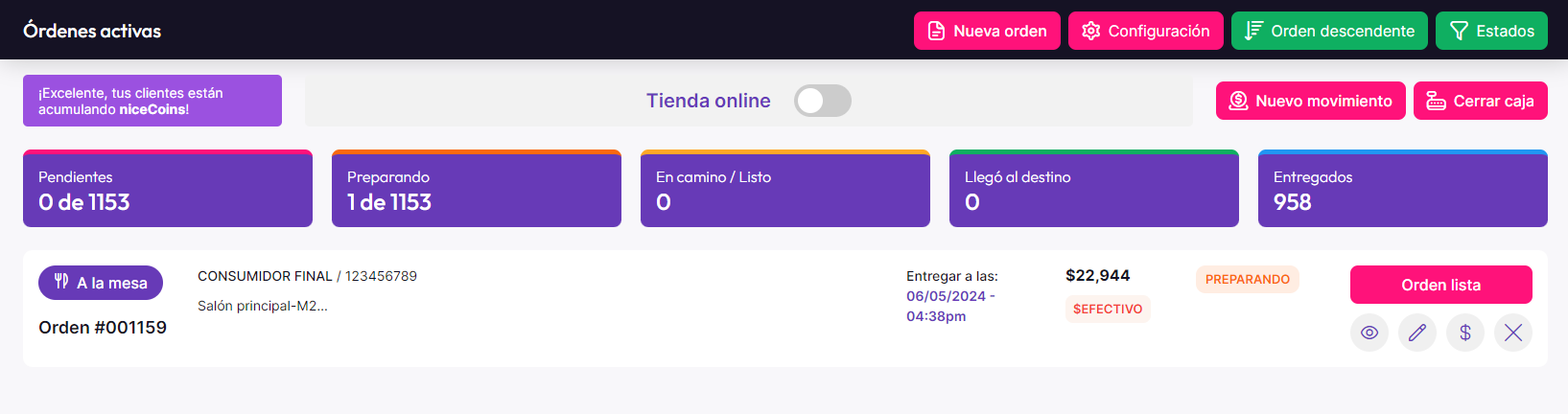 Lo primero que vamos a hacer con una orden creada o que llega a nuestro panel de órdenes activas, va a ser visualizar el detalle de esa orden.